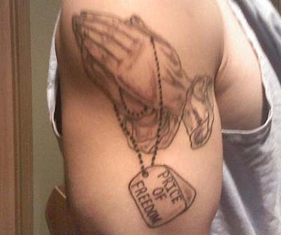 Brian Littrell has been spotted with a couple of tattoos, including a religious masterpiece on his left shoulder which contains a cross with clouds and sunbeams, the saying "Rock of Ages", along with an angel head and wings.